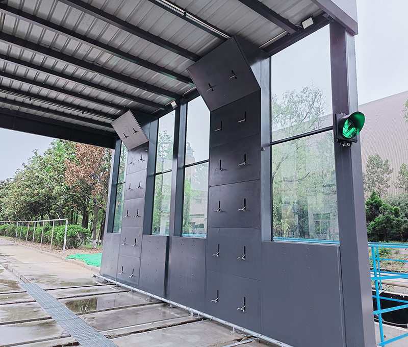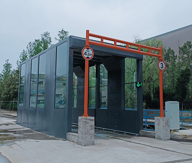 2、車輛緩慢向前移動(dòng),進(jìn)入循環(huán)水沖洗平臺(tái)區(qū)域,高壓水噴嘴對(duì)車輛輪胎、底盤、兩側(cè)、進(jìn)行徹底清洗。沖洗時(shí)間一般40~120s,根據(jù)實(shí)際沖洗效果控制車輛行駛速度來控制沖洗時(shí)間。